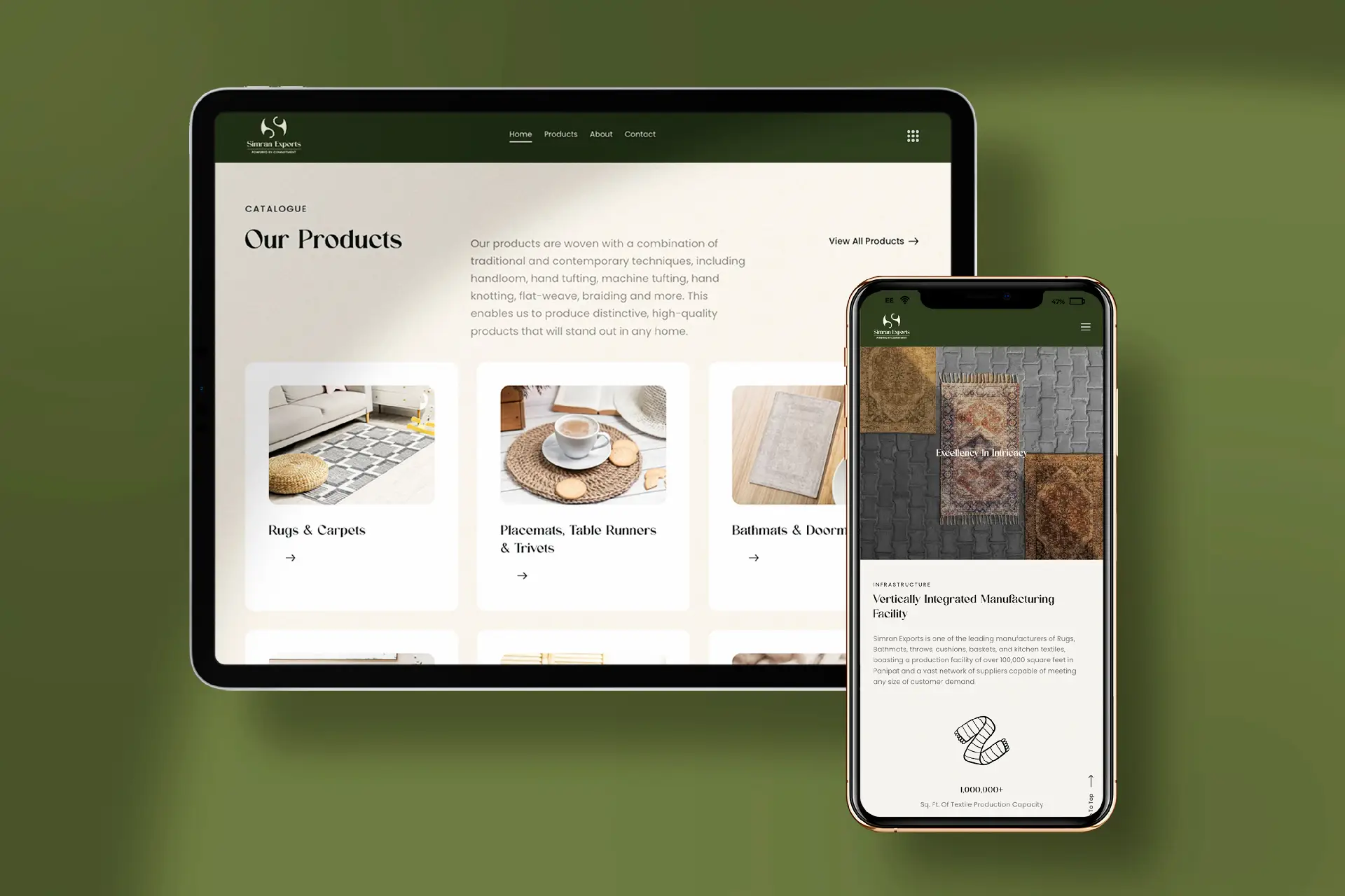 Our work for Simran Exports spanned strategy, design, photography, and technology.
