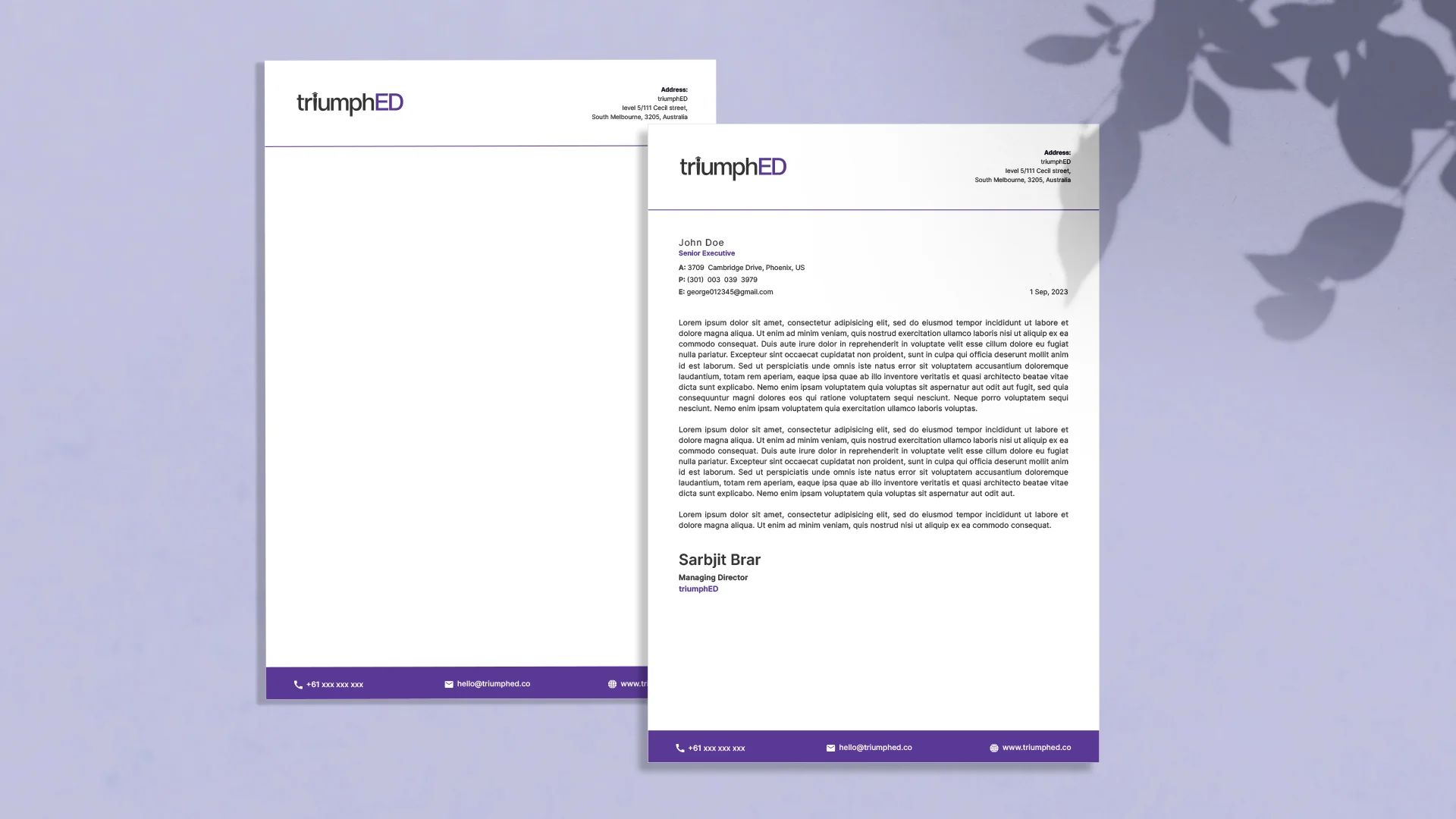 TriumphED emerged with a unified, global-ready brand identity that positioned it as a trusted name in international education. The new system created visual harmony, improved communication with students and institutional partners, and gave TriumphED a clear, confident voice in a competitive market.
